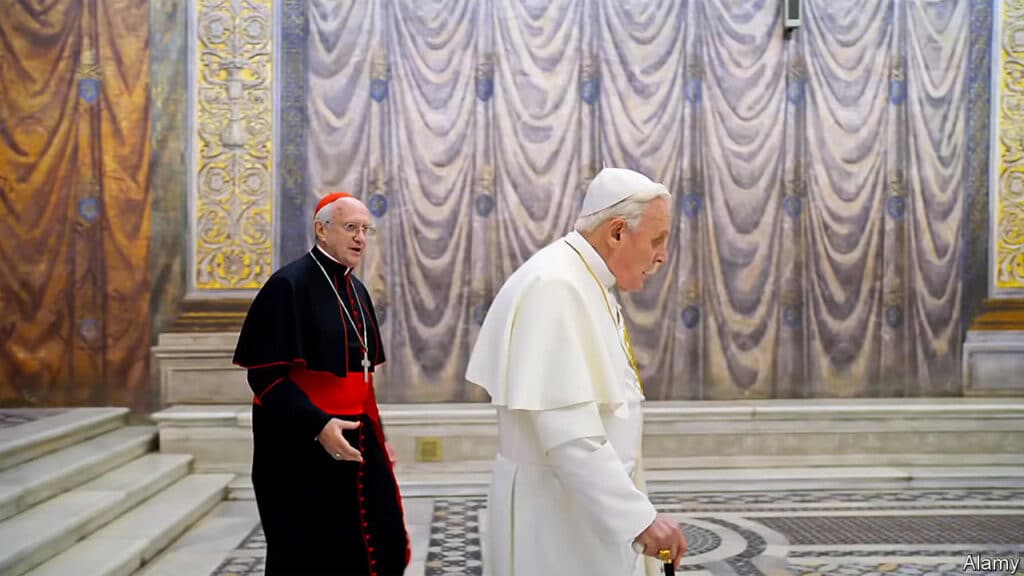 Dirigida por el brasileño Fernando Meirelles (Ciudad de Dios, El jardinero fiel) y producida por Netflix, la película cuenta con dos conocidos actores: Anthony Hopkins (El silencio de los corderos y tantas otras), que interpreta a Benedicto XVI, y Jonathan Pryce (Juego de tronos), en el papel de Francisco.
